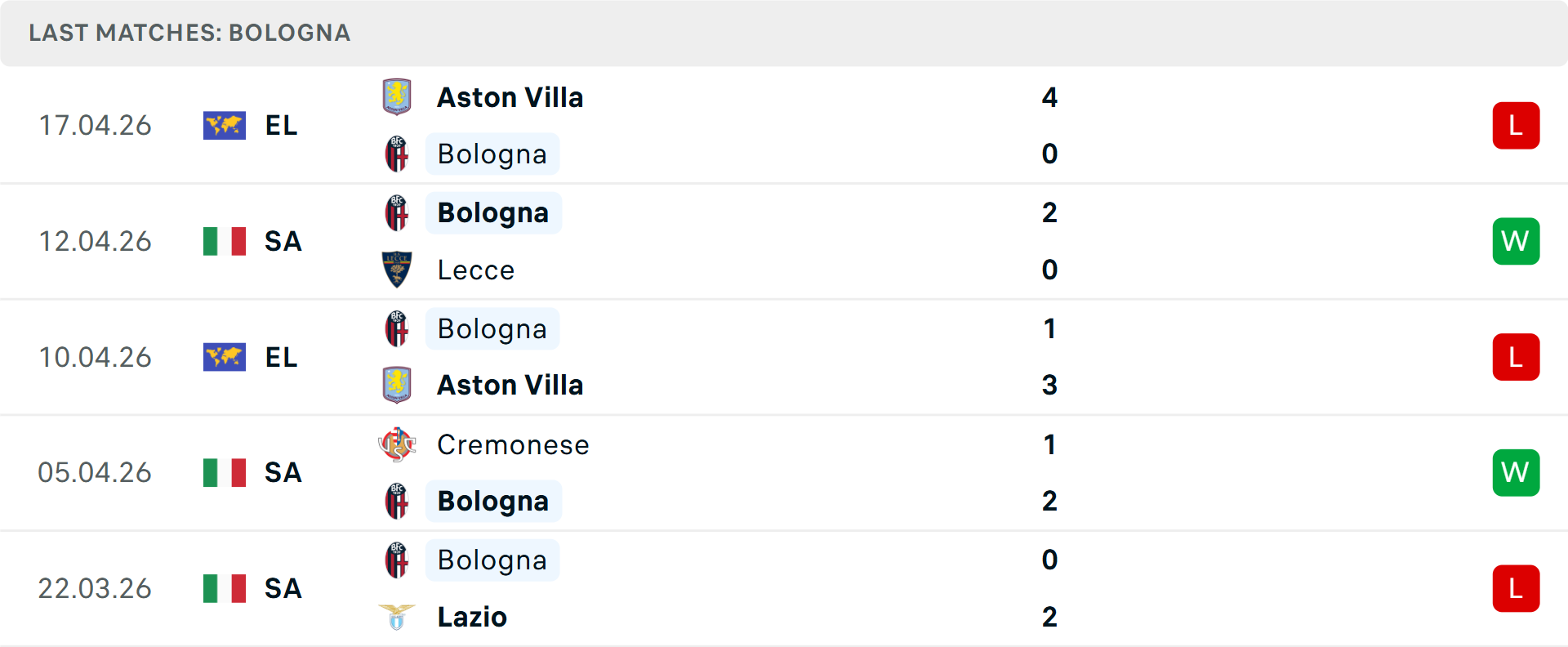 Trái ngược với đội chủ nhà, Bologna vừa trải qua cú sốc tâm lý khi bị loại thảm hại tại Europa League trước Aston Villa. Dù có thành tích sân khách khá ấn tượng với 4 chiến thắng liên tiếp, nhưng lịch sử lại không đứng về phía thầy trò HLV Vincenzo Italiano. Bologna đã không thể đánh bại "Bà đầm già" trong 27 lần chạm trán gần nhất suốt 15 năm qua.