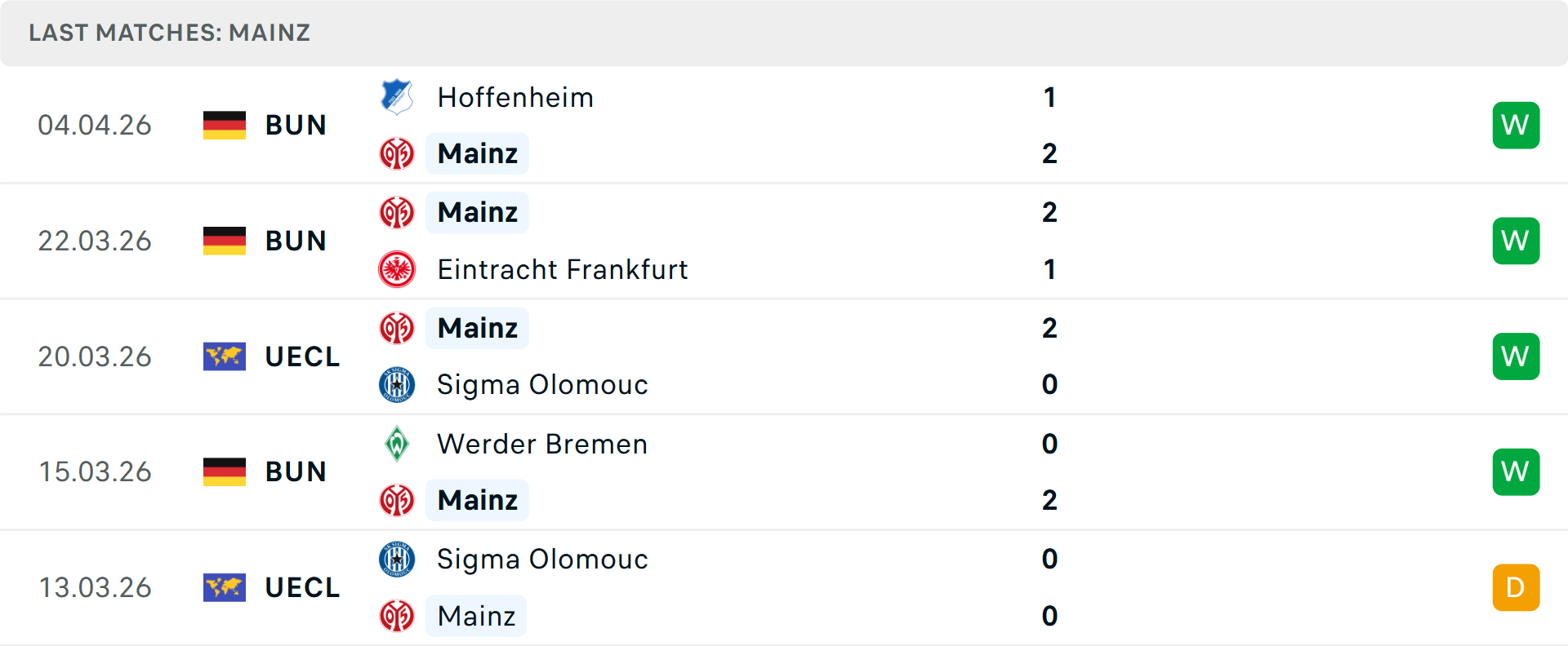 Sự xuất hiện của HLV Urs Fischer đã thổi một luồng sinh khí mới vào Mainz, biến một đội bóng ngấp nghé nhóm xuống hạng thành kẻ thách thức đáng gờm. Với chuỗi 8 trận bất bại liên tiếp, bao gồm những chiến thắng ấn tượng trước Frankfurt và Hoffenheim, đại diện nước Đức đang tràn đầy tự tin bước vào vòng tứ kết. Pháo đài MEWA Arena chính là điểm tựa rất lớn cho "Die Nullfunfer", nơi họ đã toàn thắng cả 5 trận tại Conference League mùa này.
