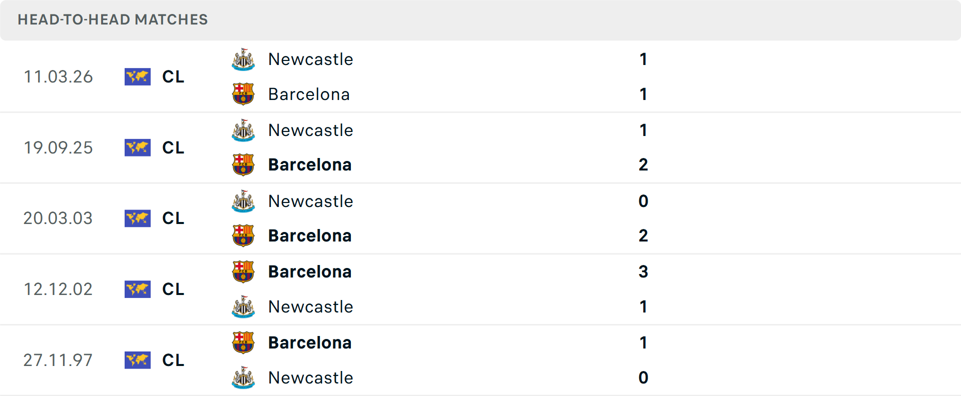 Sức mạnh tại Camp Nou của Barcelona trước các đại diện Anh là rất đáng nể với chuỗi 14 trận bất bại. Hàng công Barca đang thăng hoa sau chiến thắng 5-2 trước Sevilla, sẵn sàng trừng phạt hàng thủ đối phương. Ngược lại, Newcastle dù vừa thắng Chelsea nhưng thường xuyên gặp dớp khi hành quân đến Tây Ban Nha, thua 4/5 trận gần nhất.